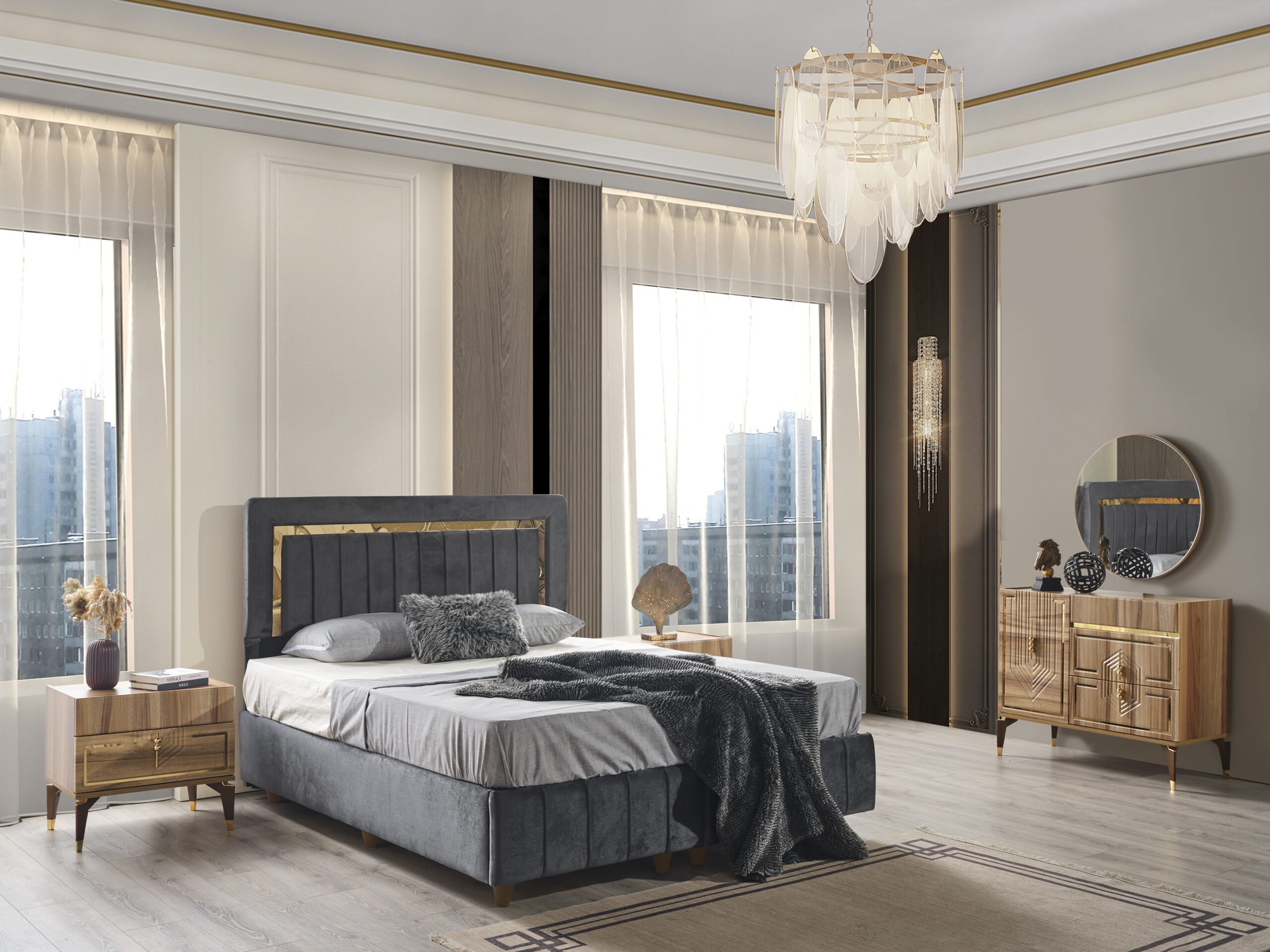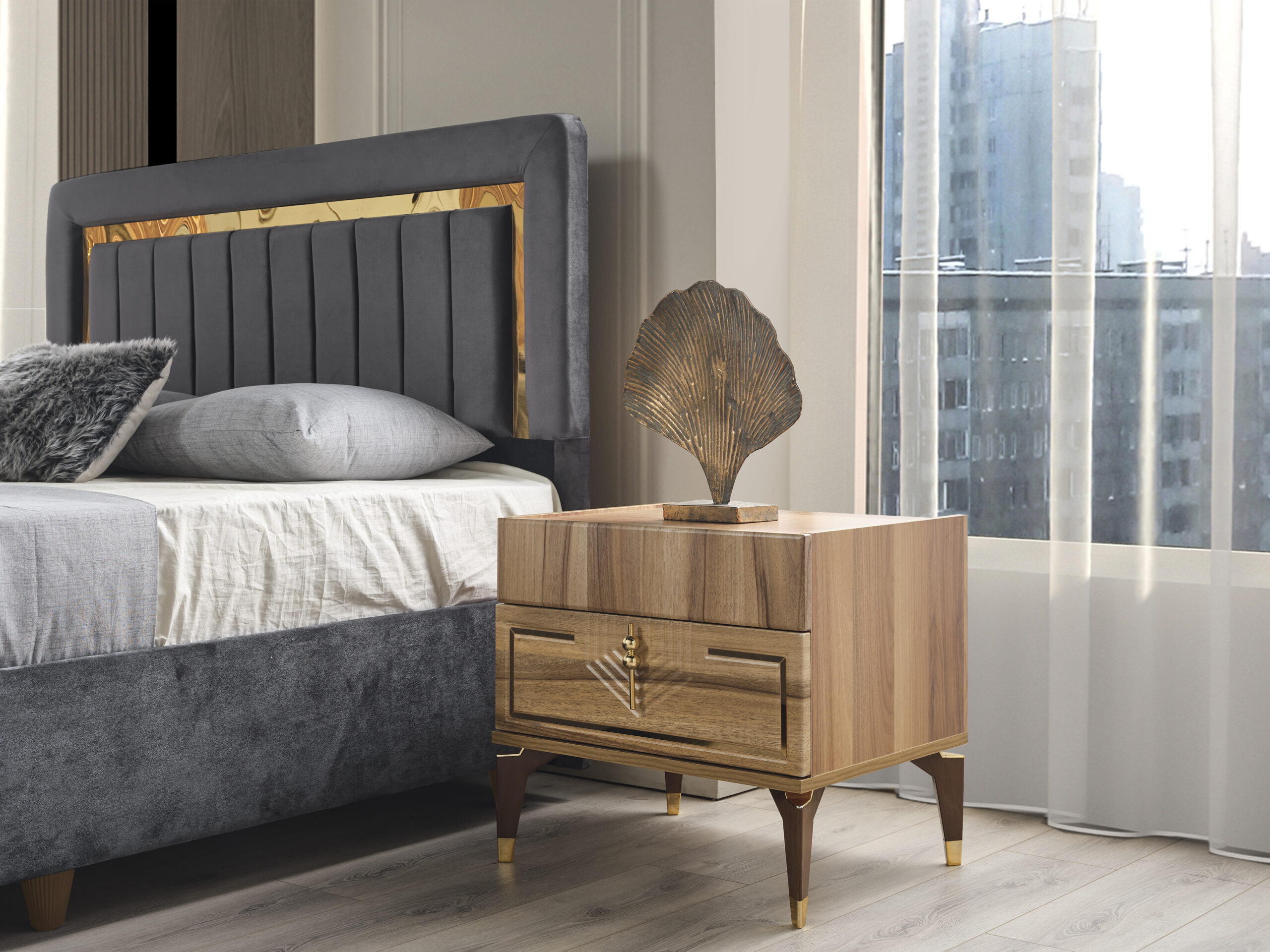 Il se compose de 2 tables de chevet et d'une tête de lit.